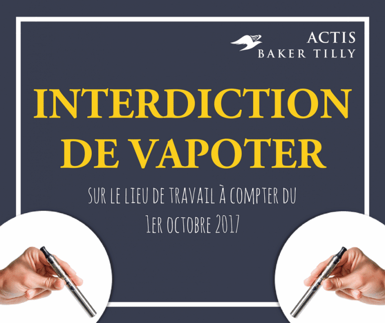 Interdiction du vapotage sur le lieu de travail à compter du 1er octobre 2017